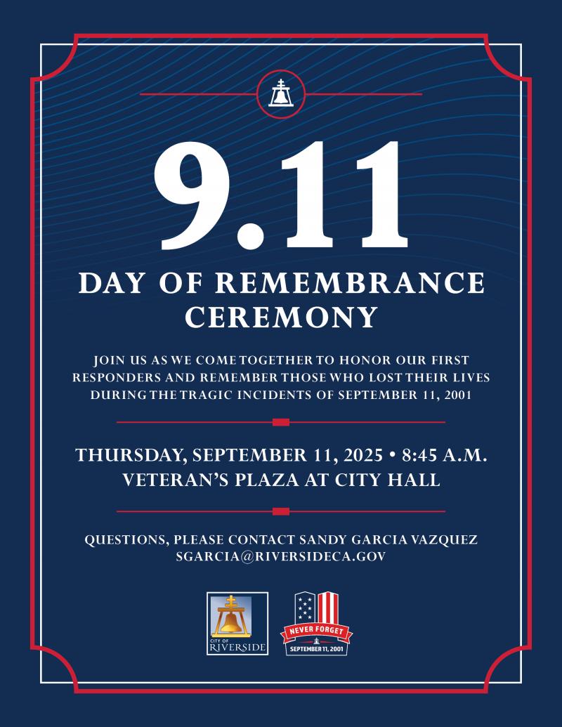 City of Riverside will honor first responders and remember those who lost their lives during the tragic incidents of Sept. 11, 2001.
